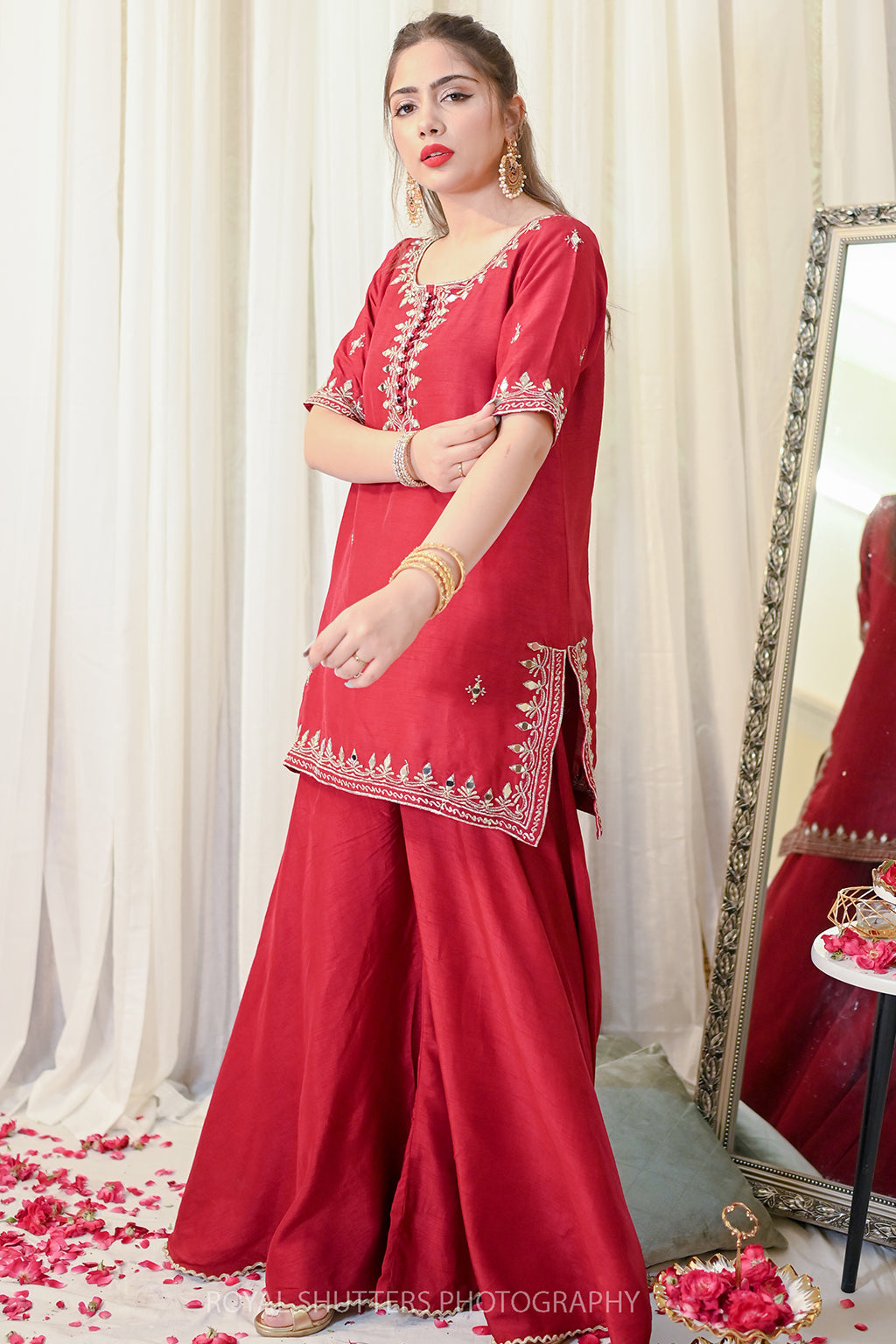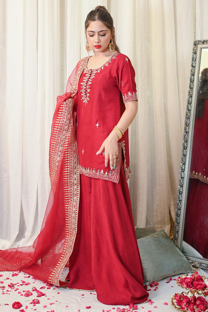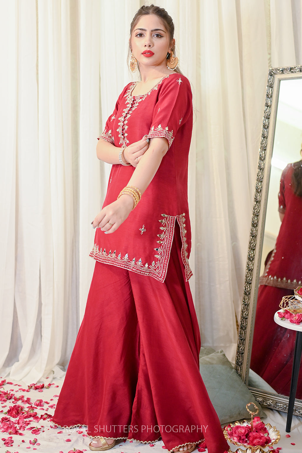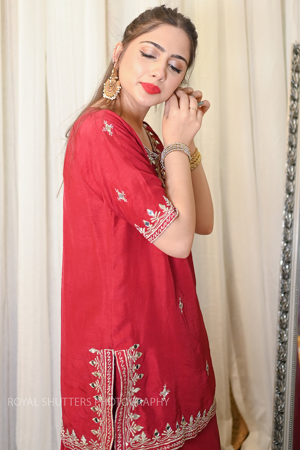 Korean Rawsilk Dupatta: Soft Matte Organza Details: Tilla and Mirror work
