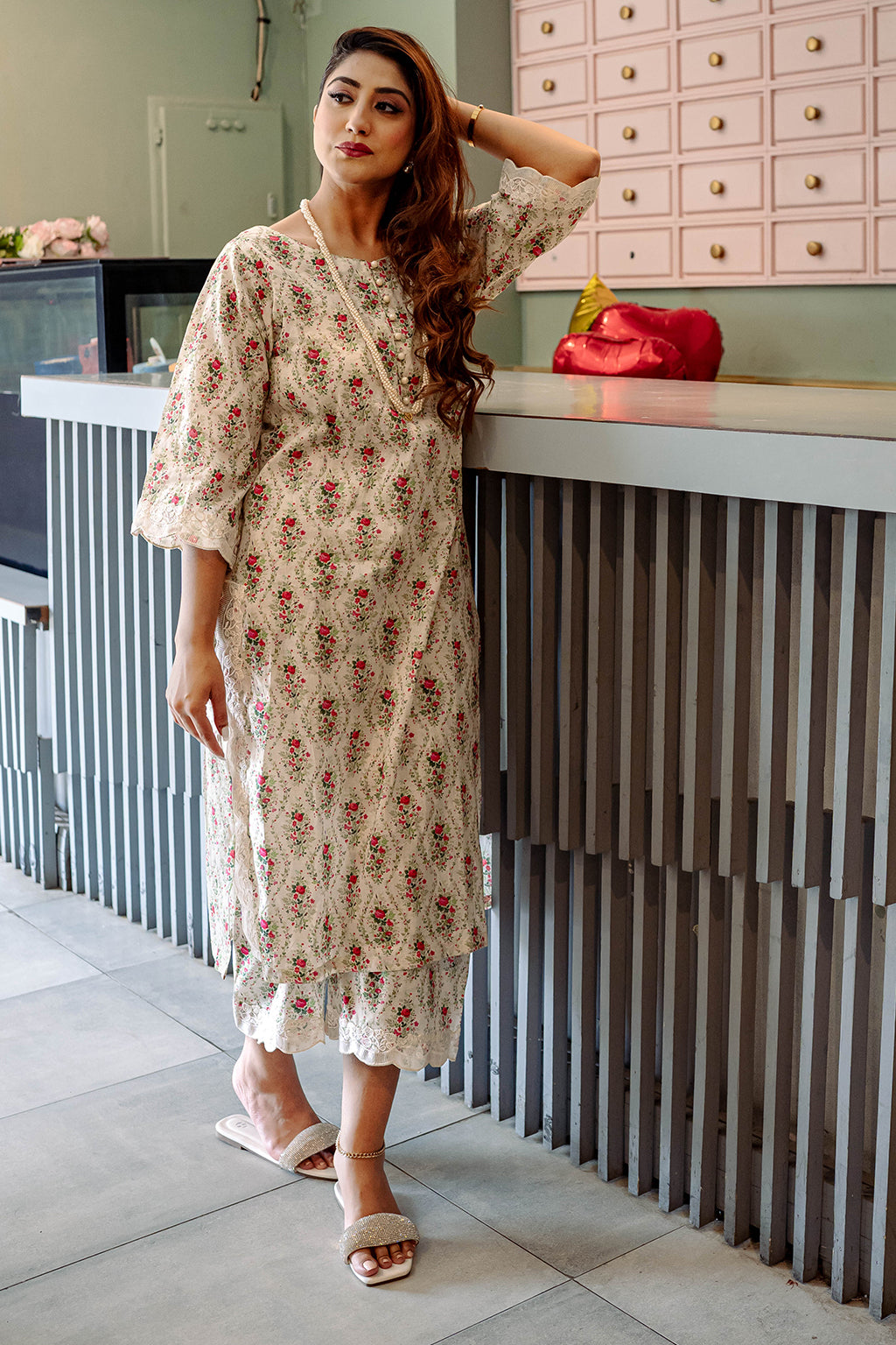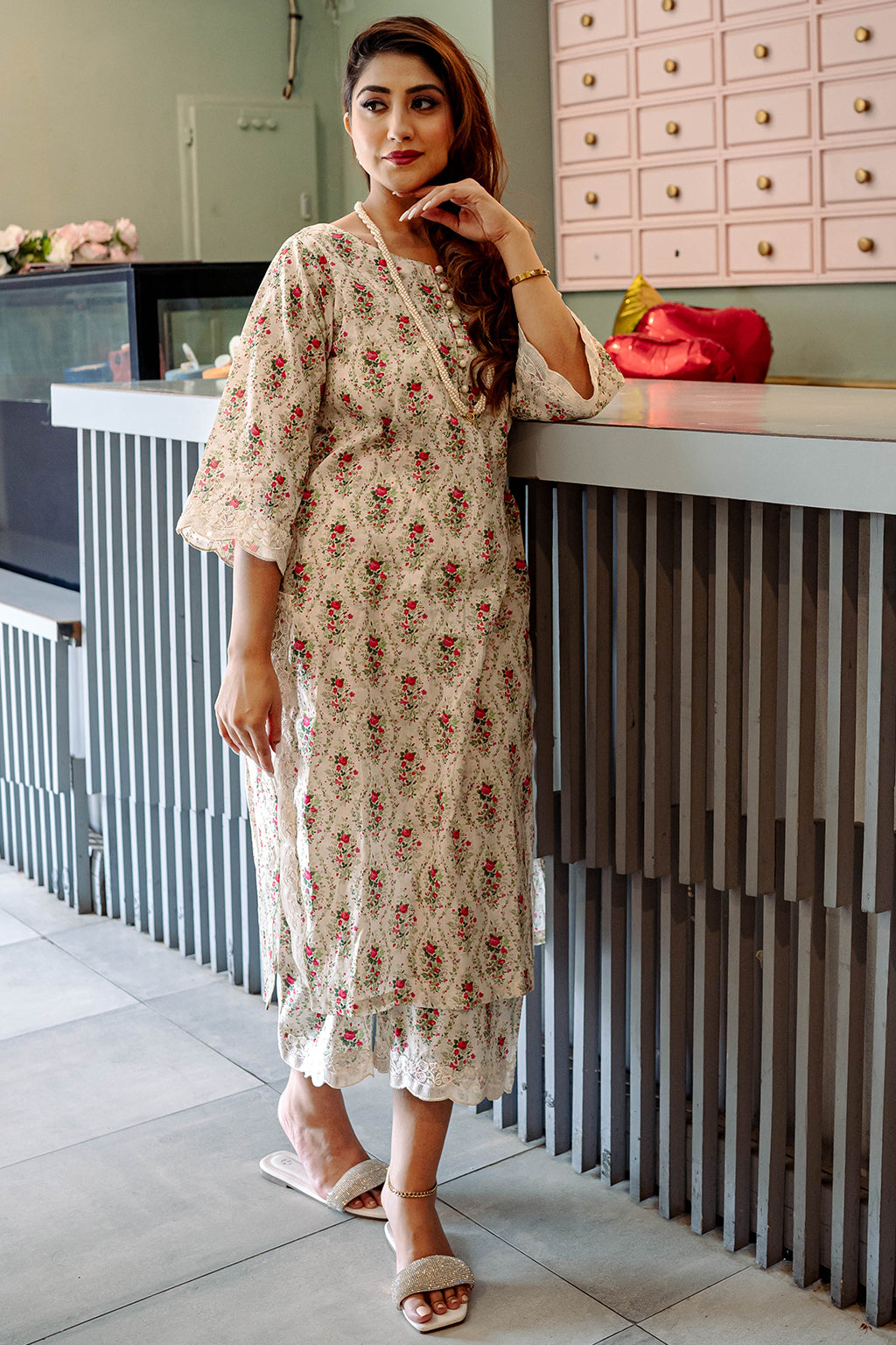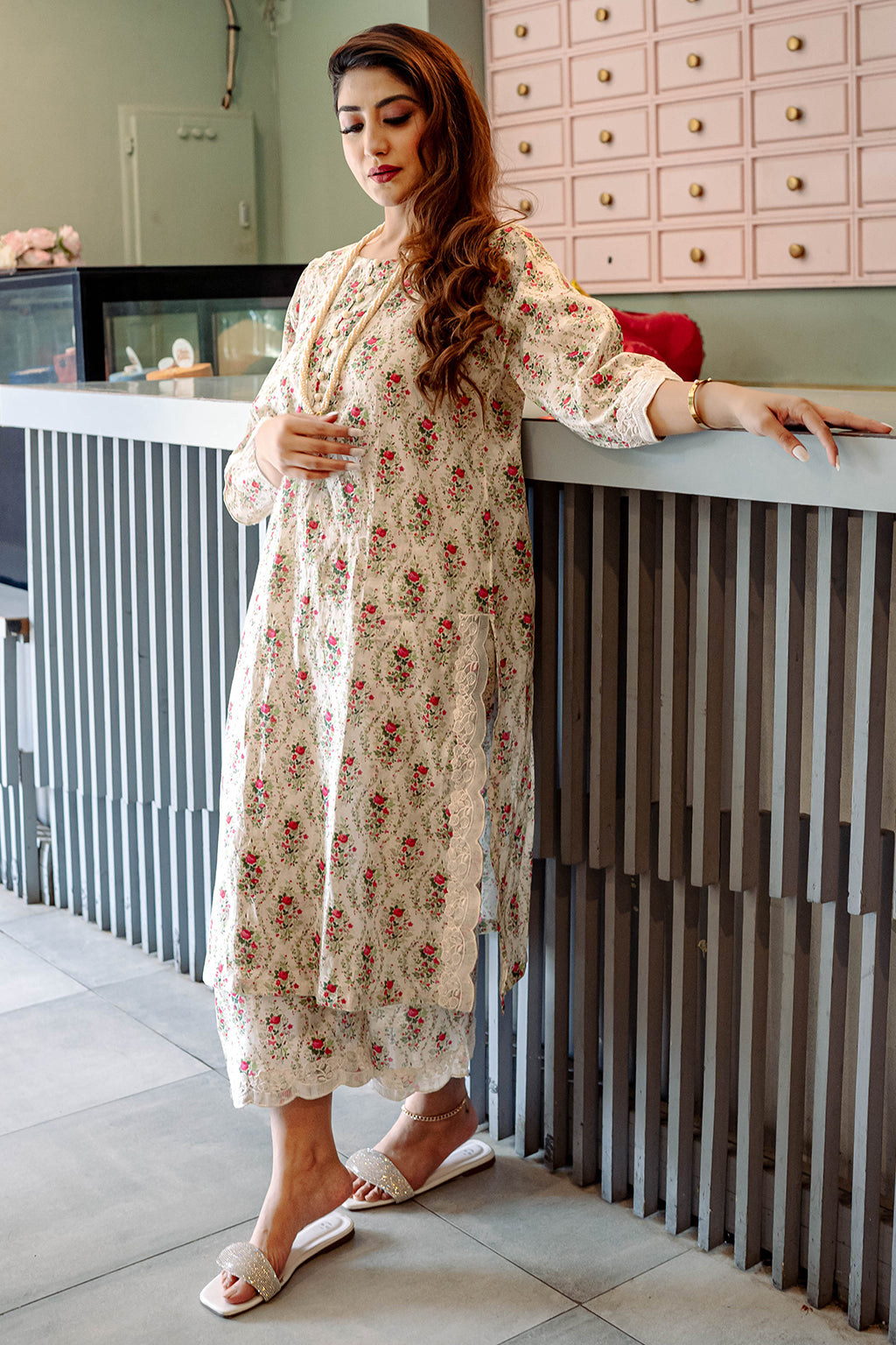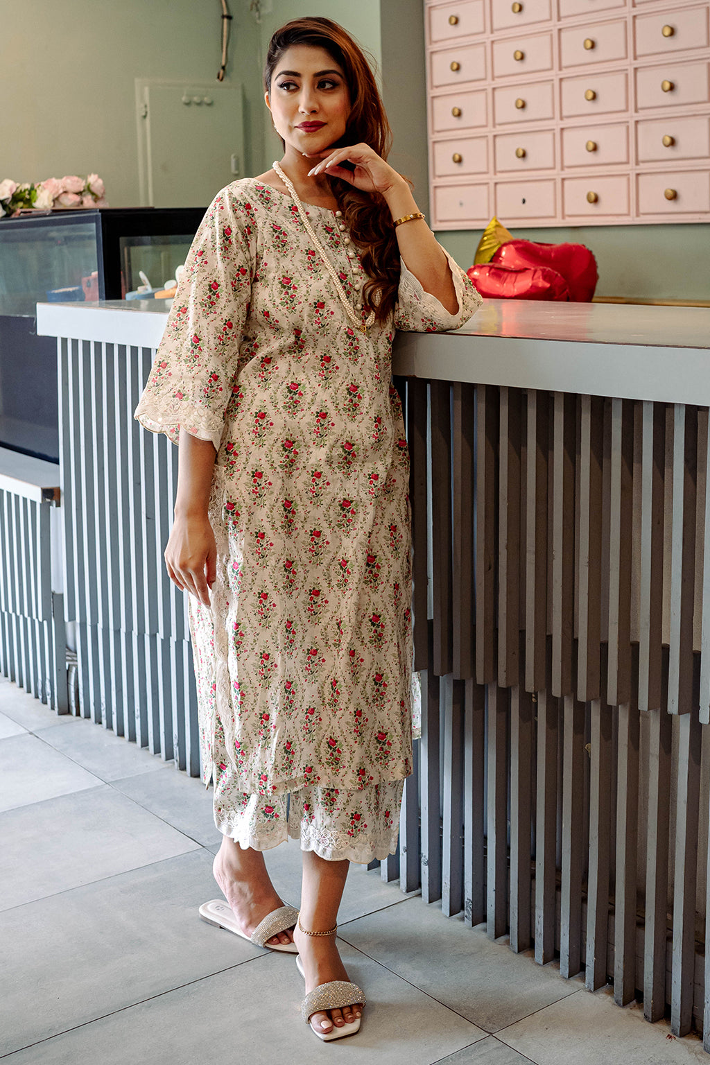 Floral Printed Lawn Co-ord set with embellished lace