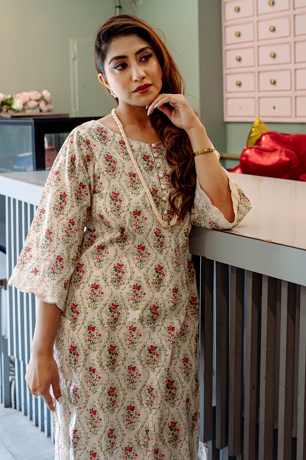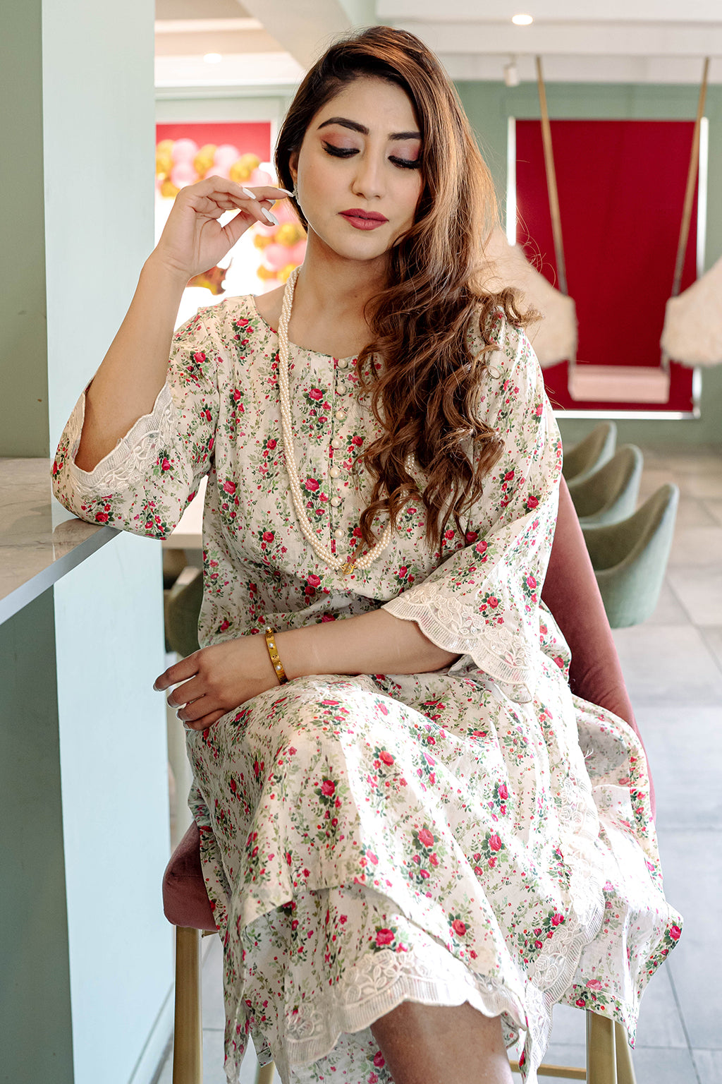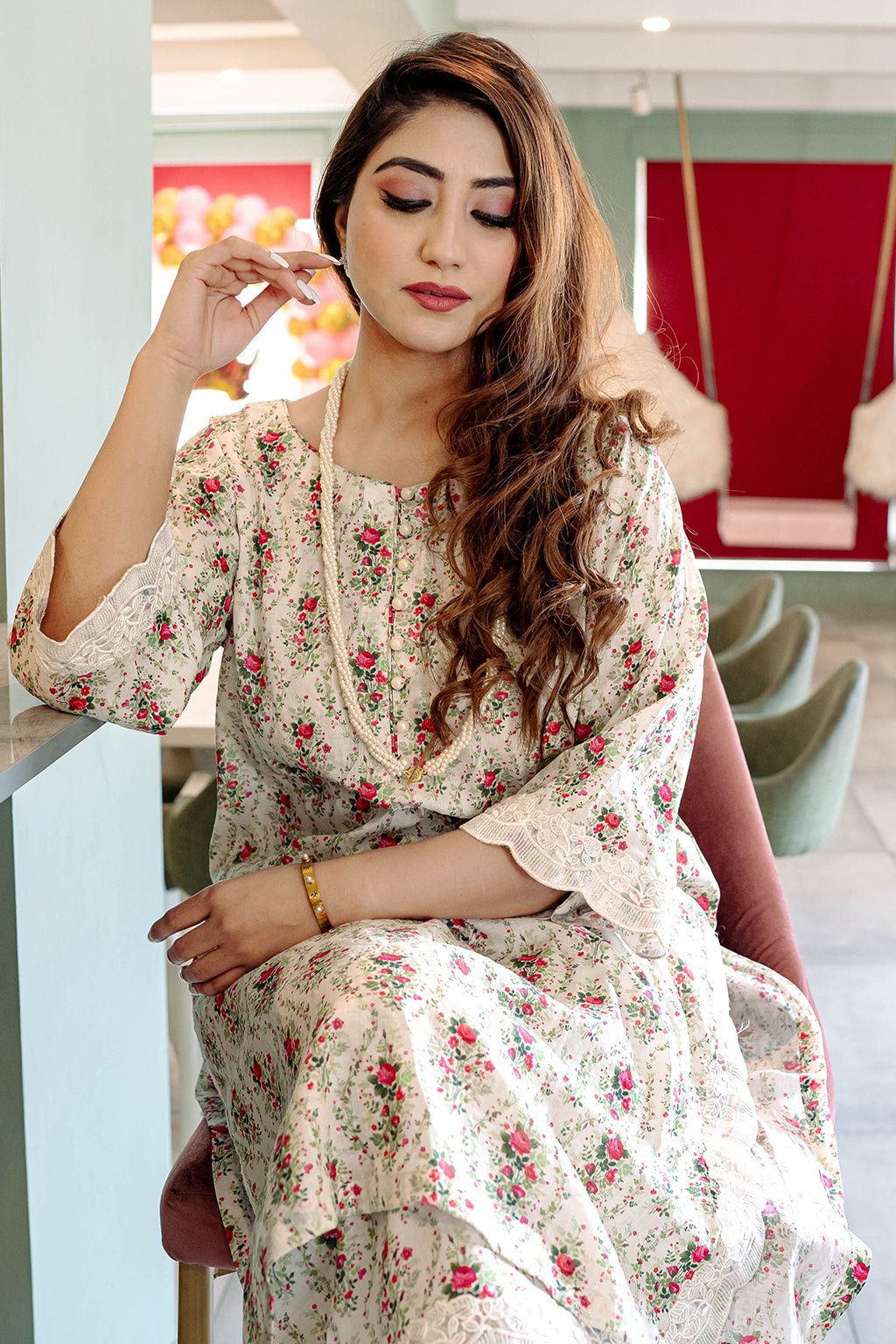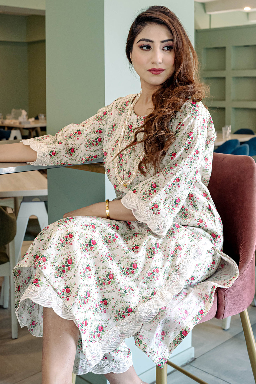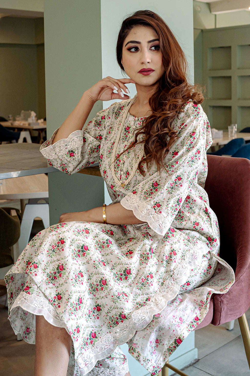 Floral Printed Lawn Co-ord set with embellished lace