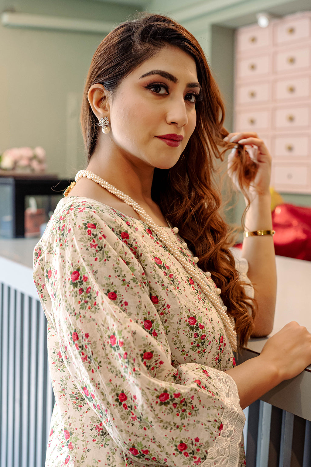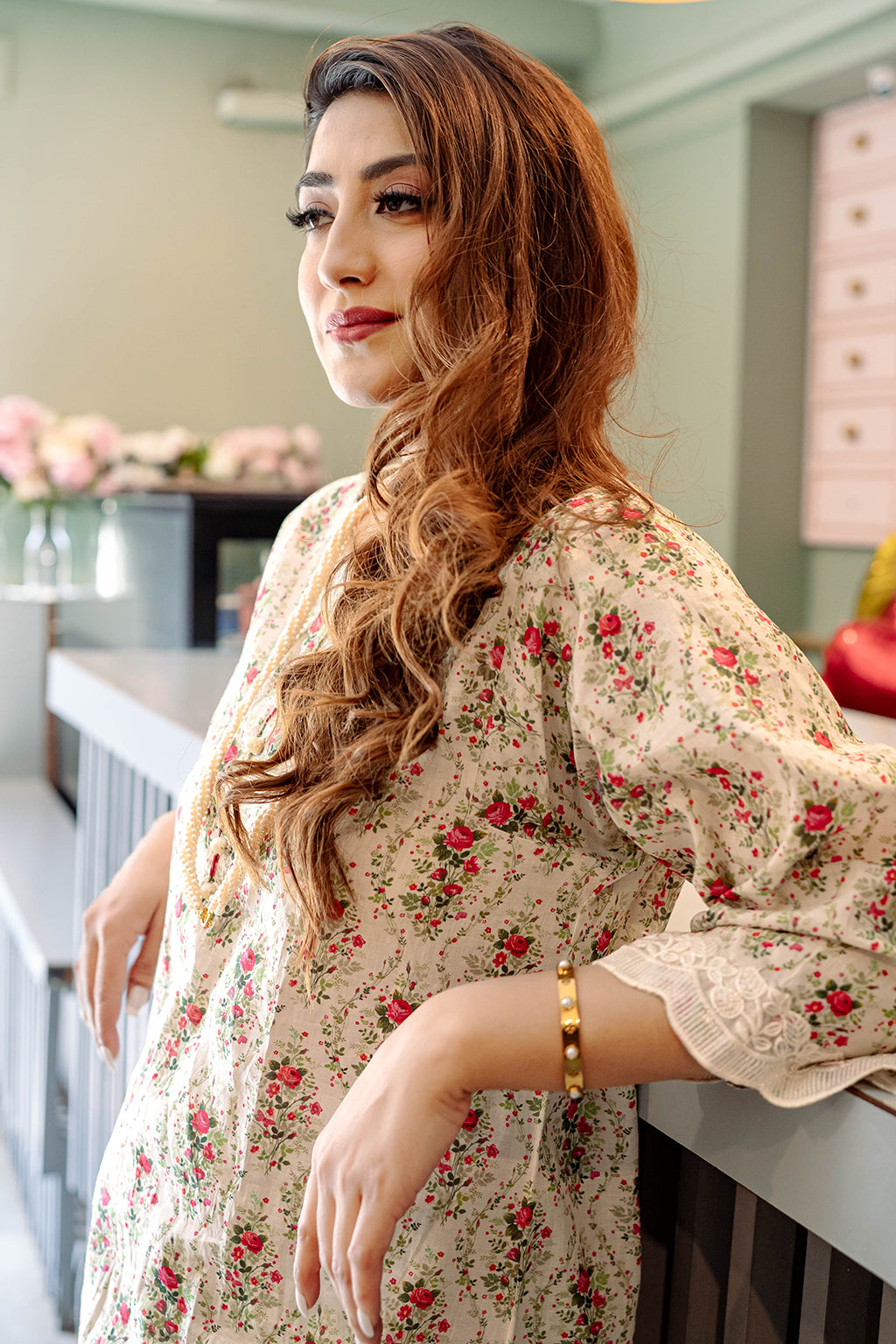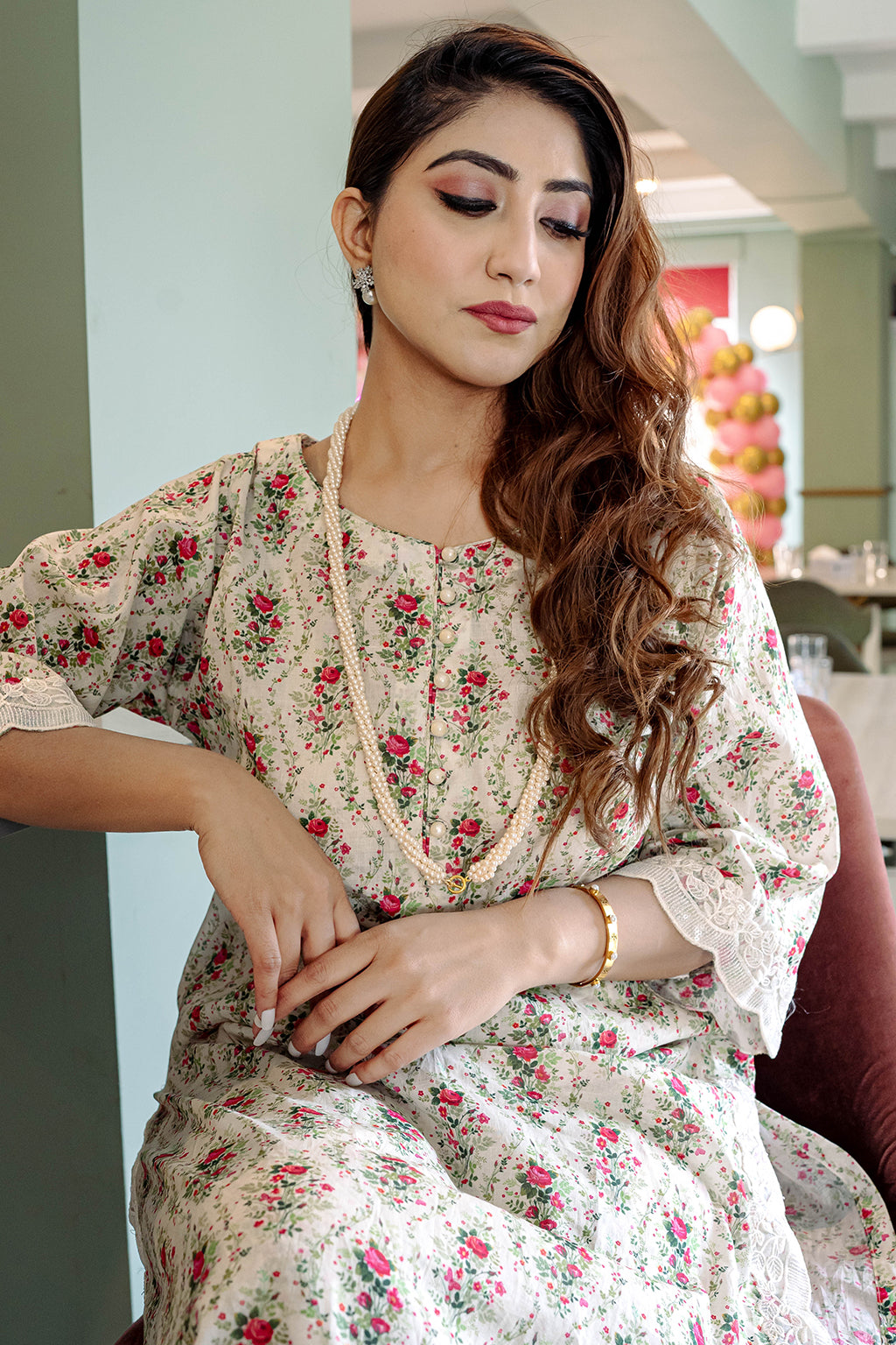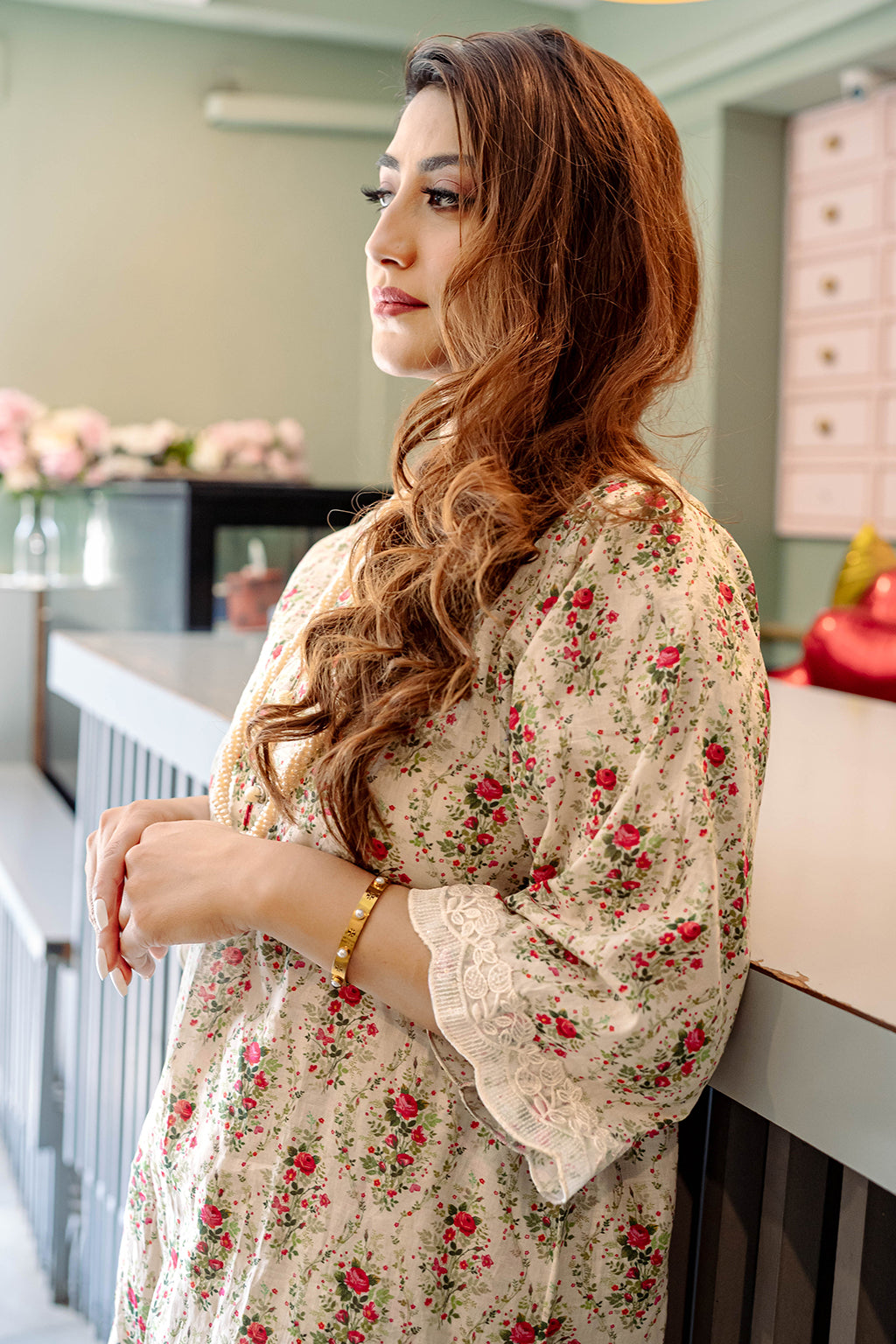 Floral Printed Lawn Co-ord set with embellished lace