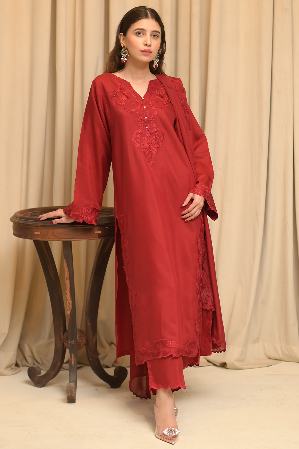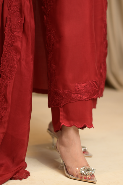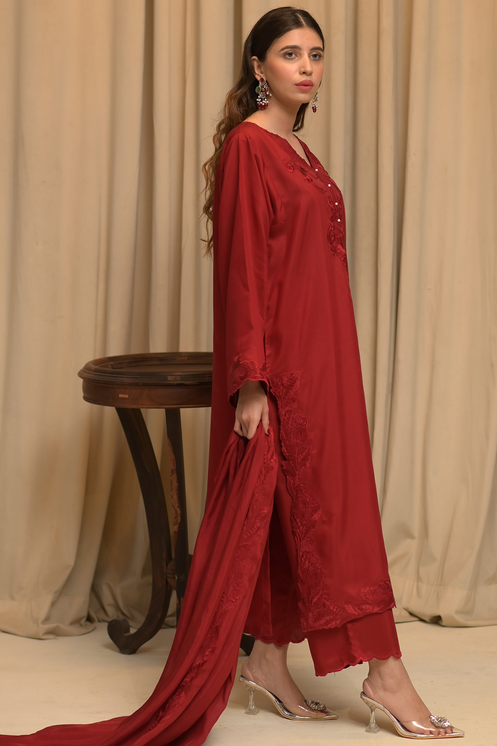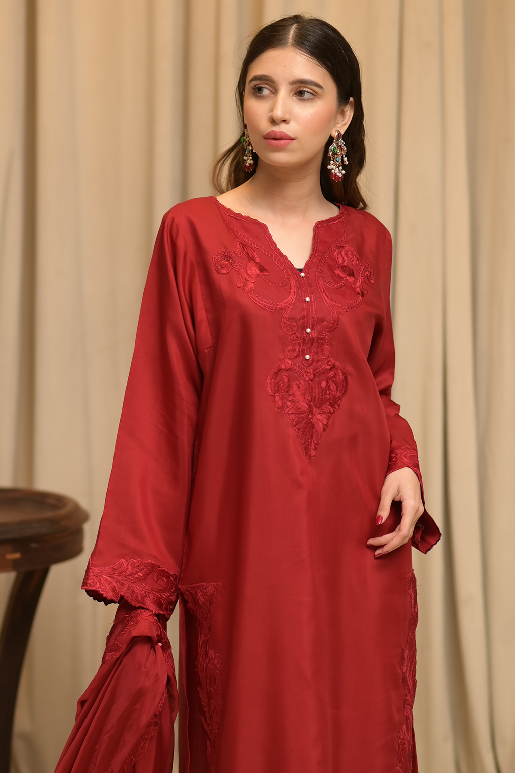 Alvish silk shirt and pants with silk dupatta. Thread embroidery work