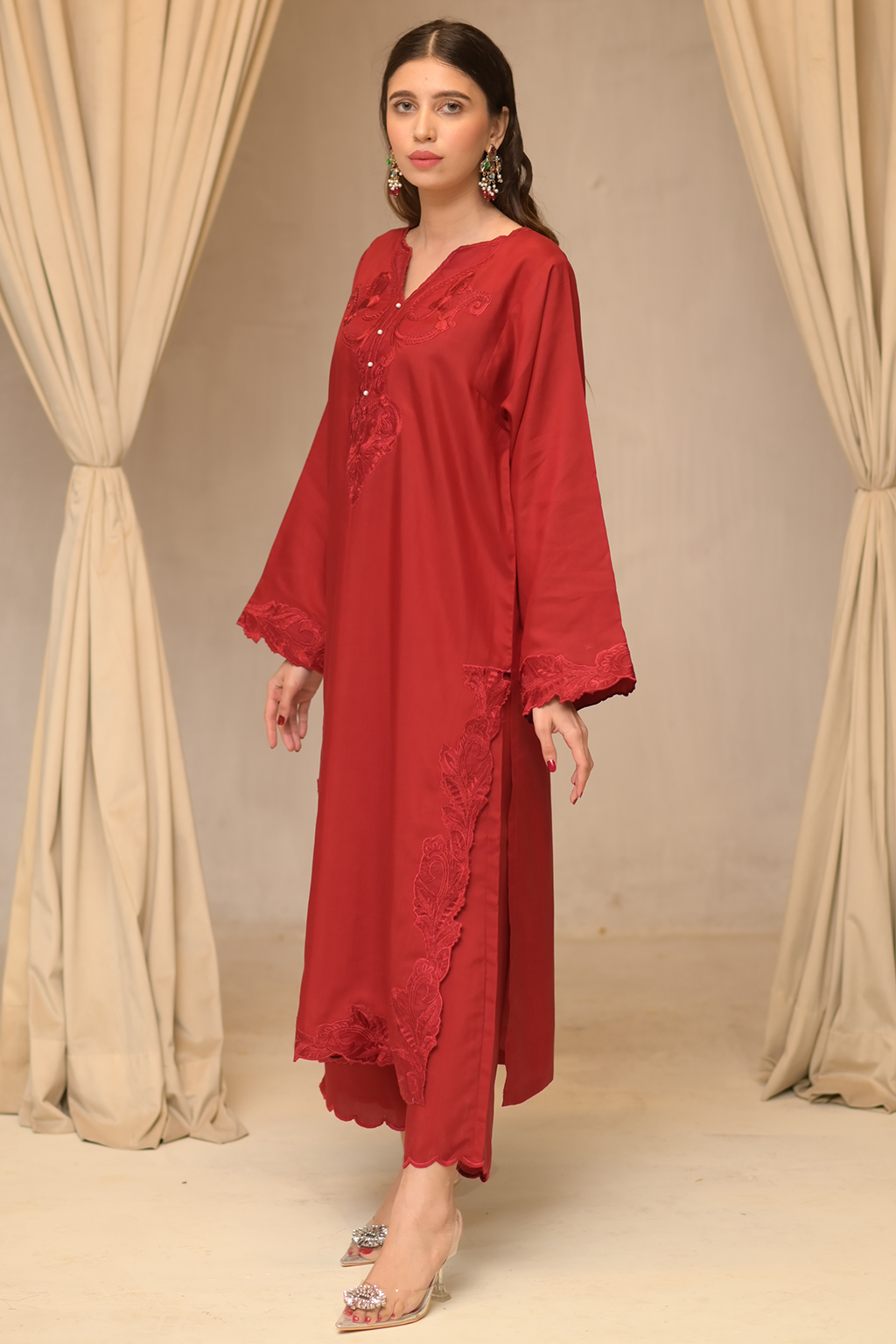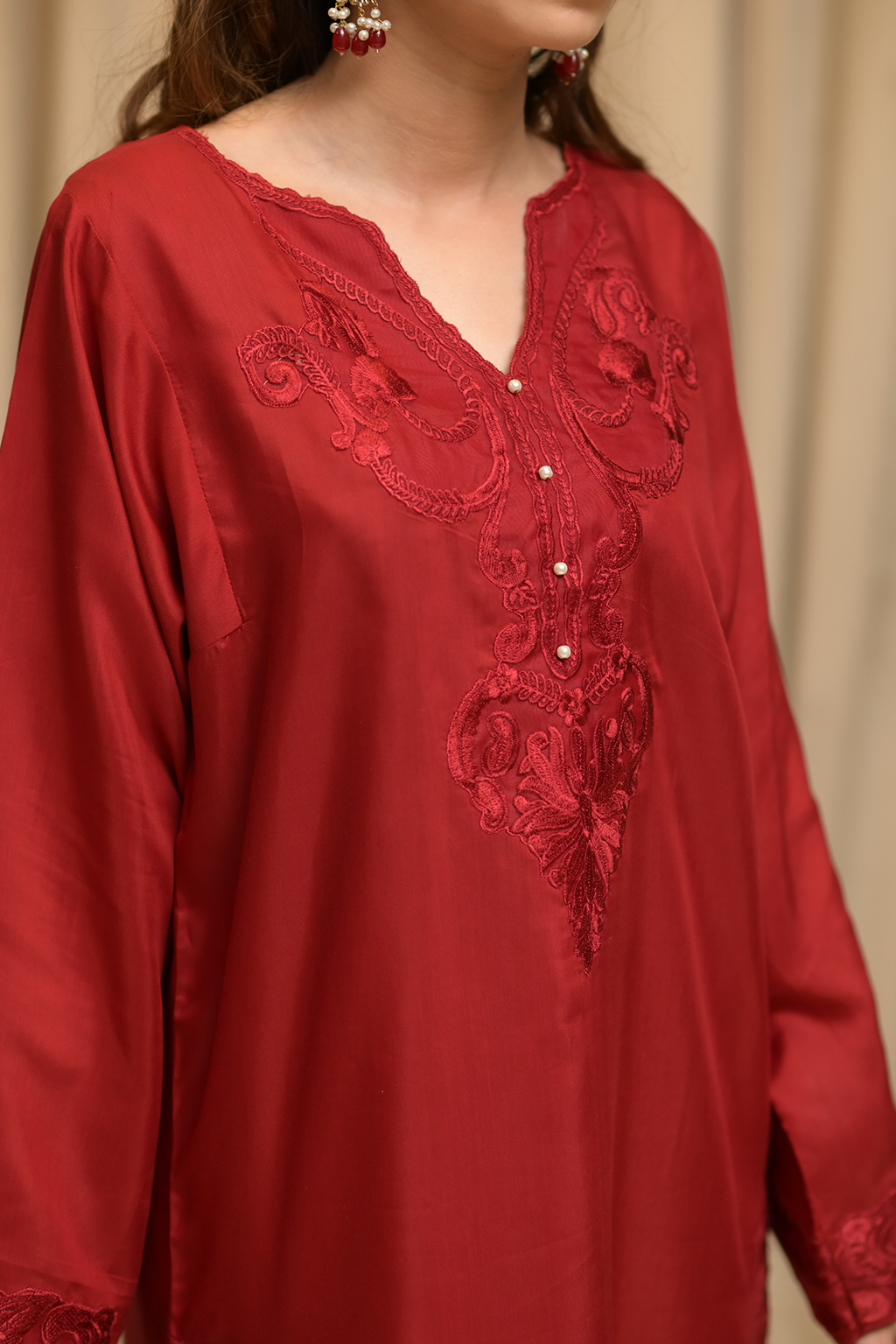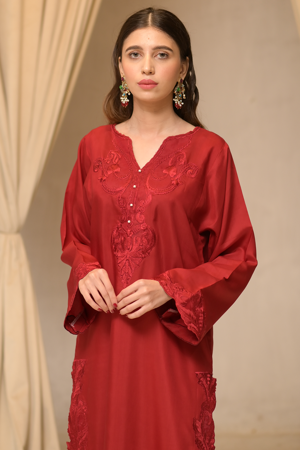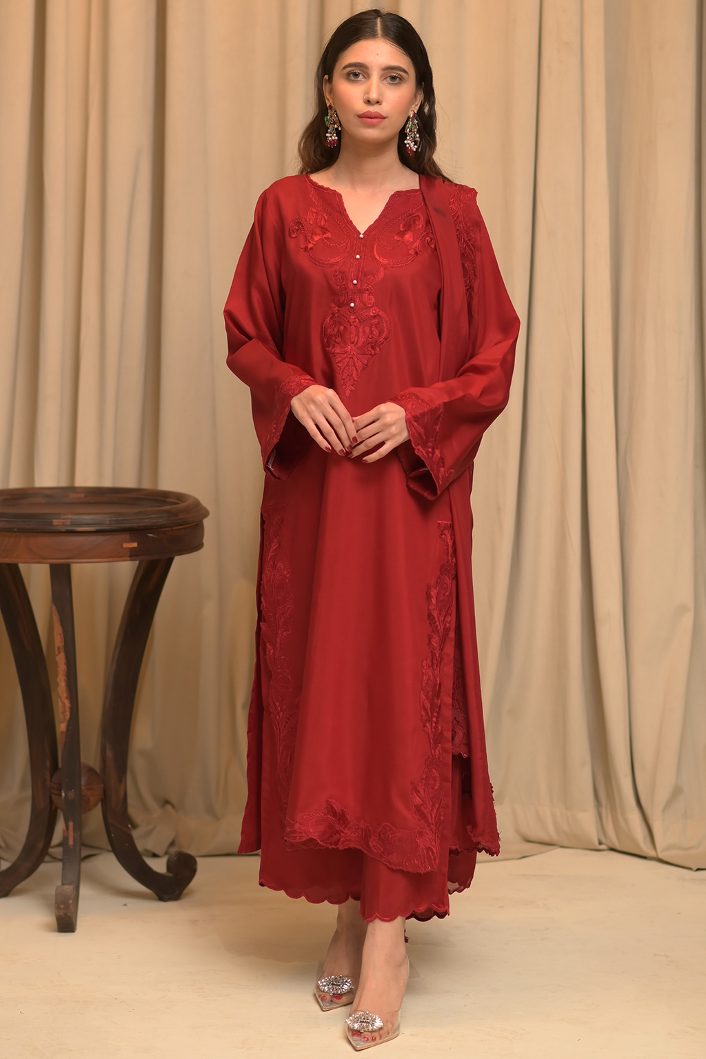 Alvish silk shirt and pants with silk dupatta. Thread embroidery work