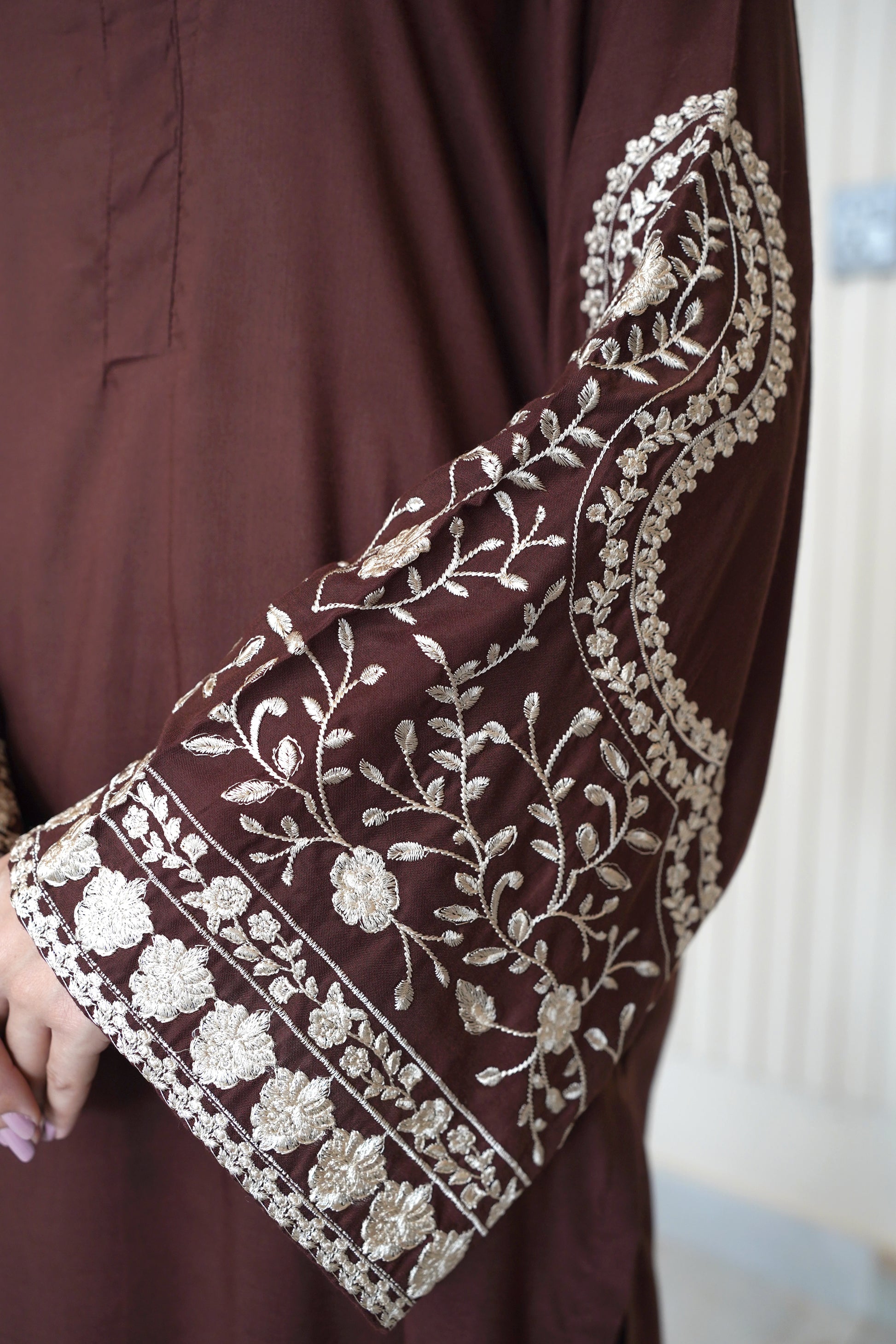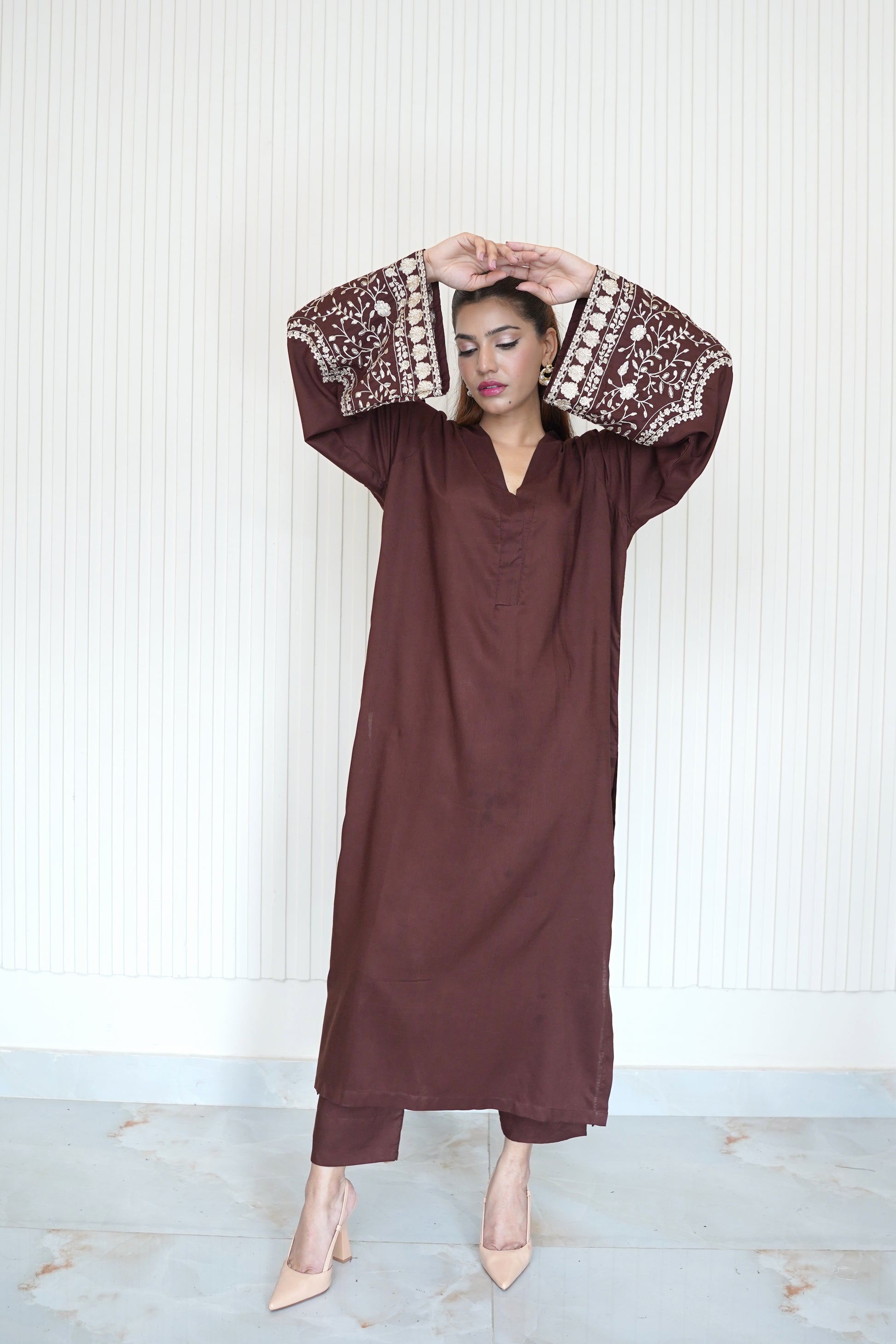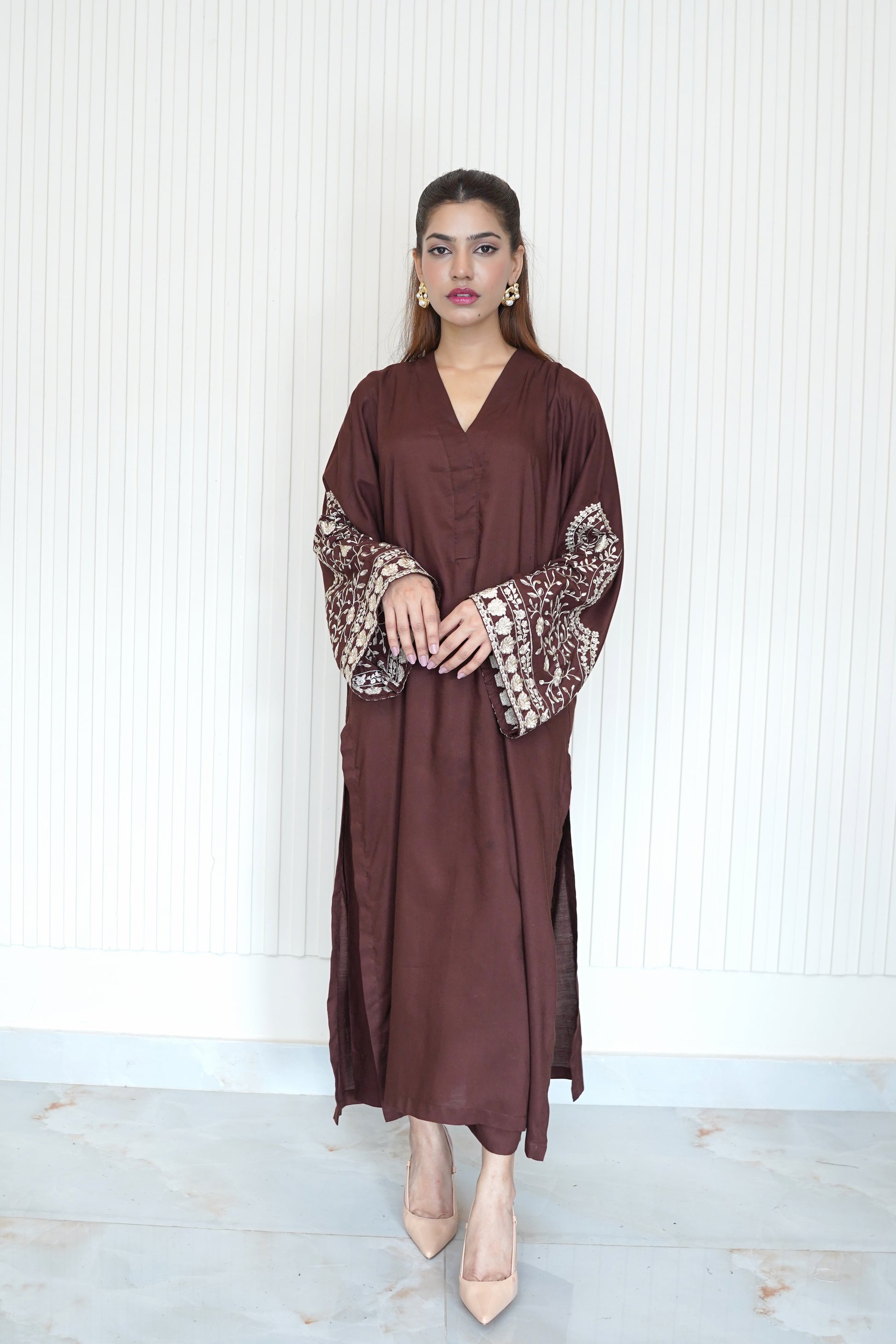 Premium Mareena for the winter season, this 2-piece outfit offers a real comfort. Delicate embroidery adds a touch of sophistication.
