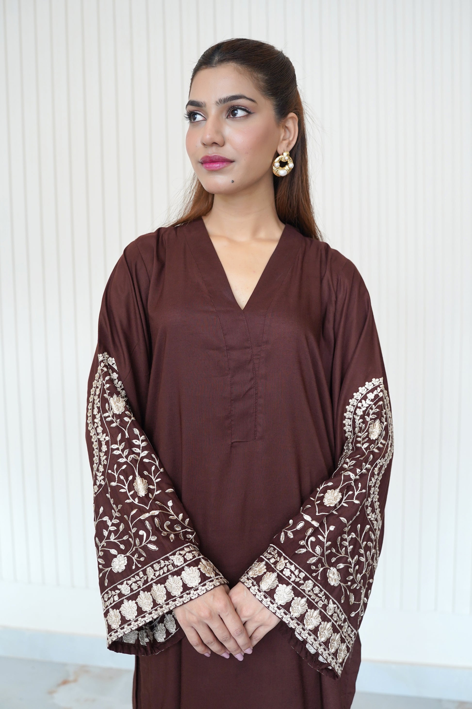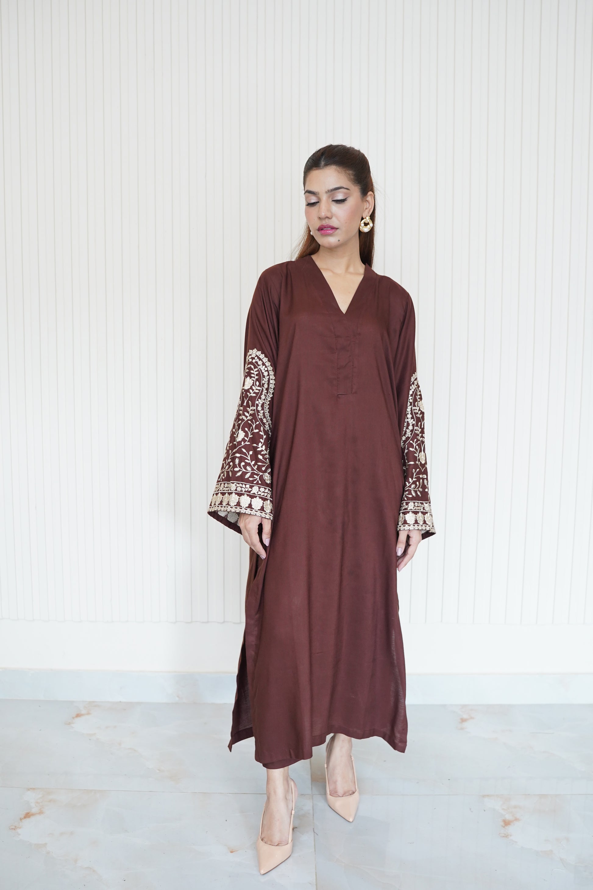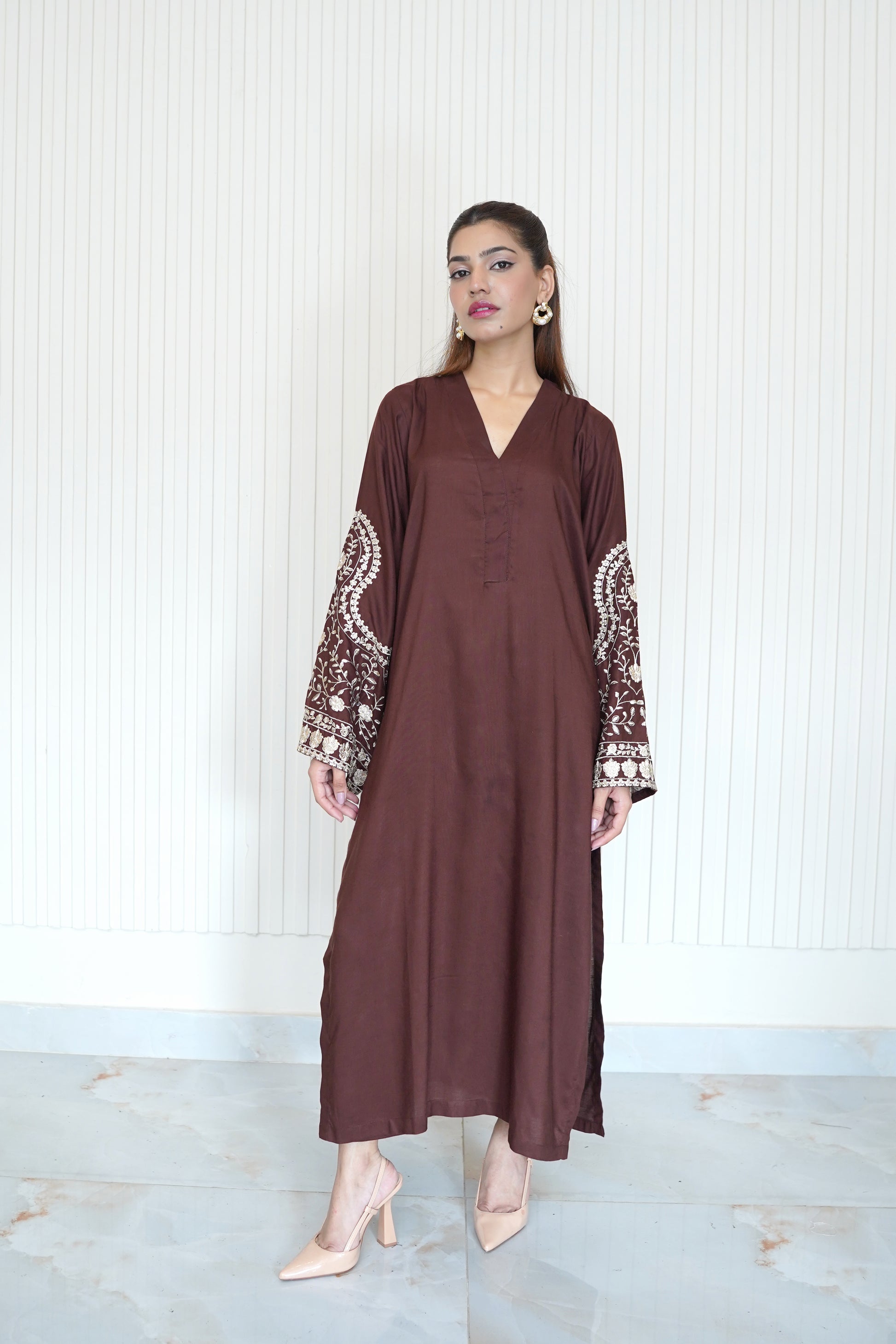 Premium Mareena for the winter season, this 2-piece outfit offers a real comfort. Delicate embroidery adds a touch of sophistication.